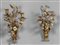 Coppia di apliques ad angolo a due luci in ferro dorato applicazioni di fiori in porcellana sec.XIX
