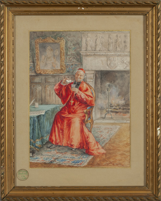 Scuola francese sec.XIX 'Ritratto di Cardinale' acquarello f.to in b. a ds.