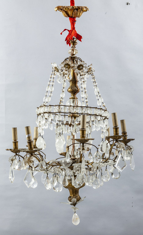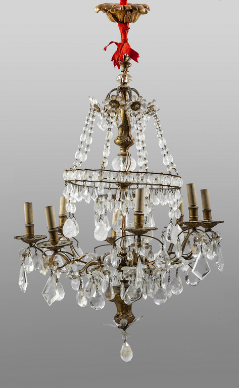 Lampadario ad otto luci in bronzo dorato con ricca decorazione in cristallo di rocca Francia sec.XIX