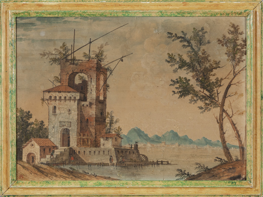 'Paesaggio con mulino' tempera su carta fine sec.XVIII