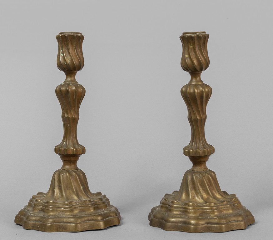 Coppia di candelieri a torciglione in bronzo Piemonte sec.XVIII