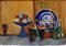 SAETTI, Bruno, Natura morta con cocomero, 1962, olio su su tela, cm. 50x66
