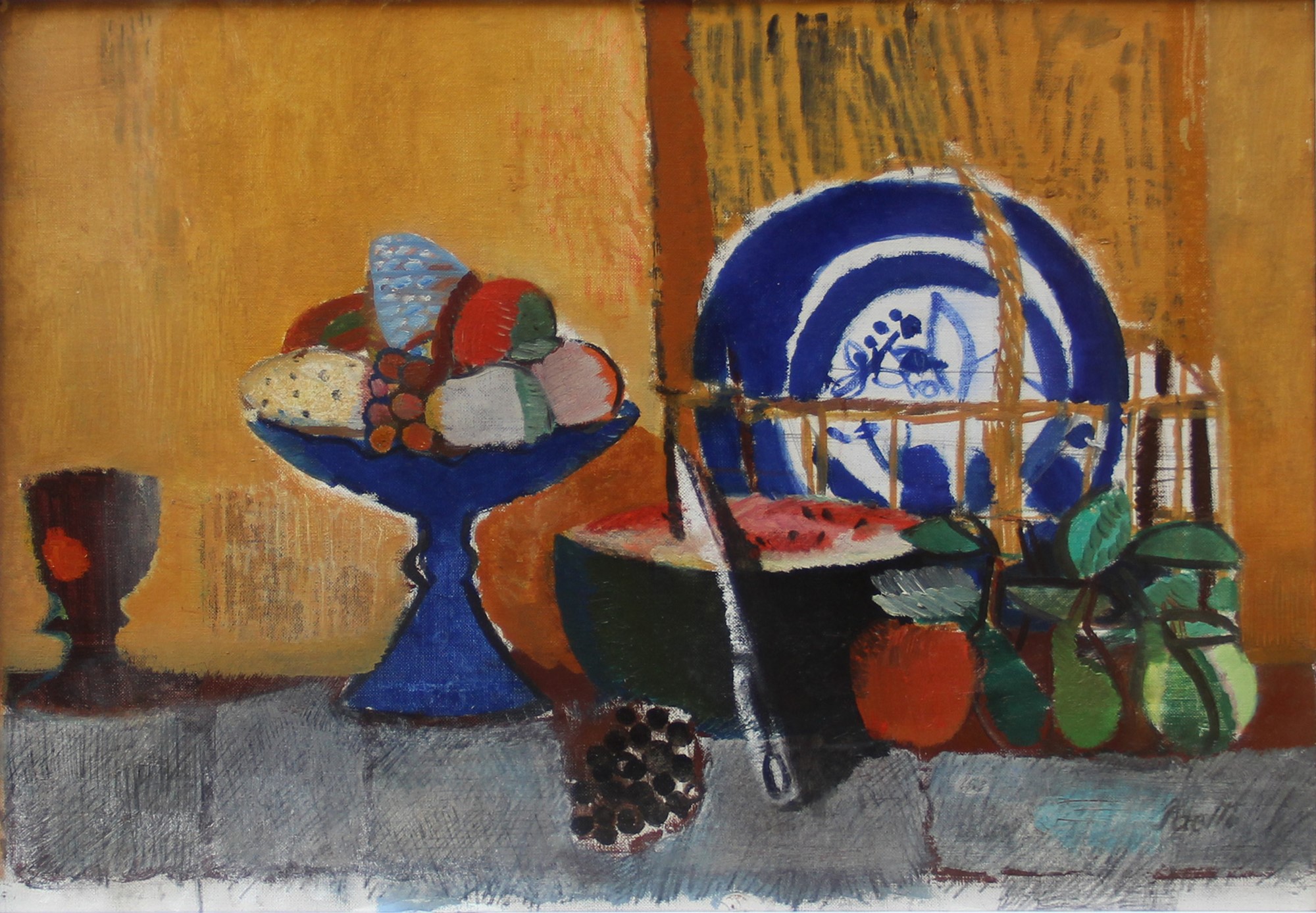 SAETTI, Bruno, Natura morta con cocomero, 1962, olio su su tela, cm. 50x66