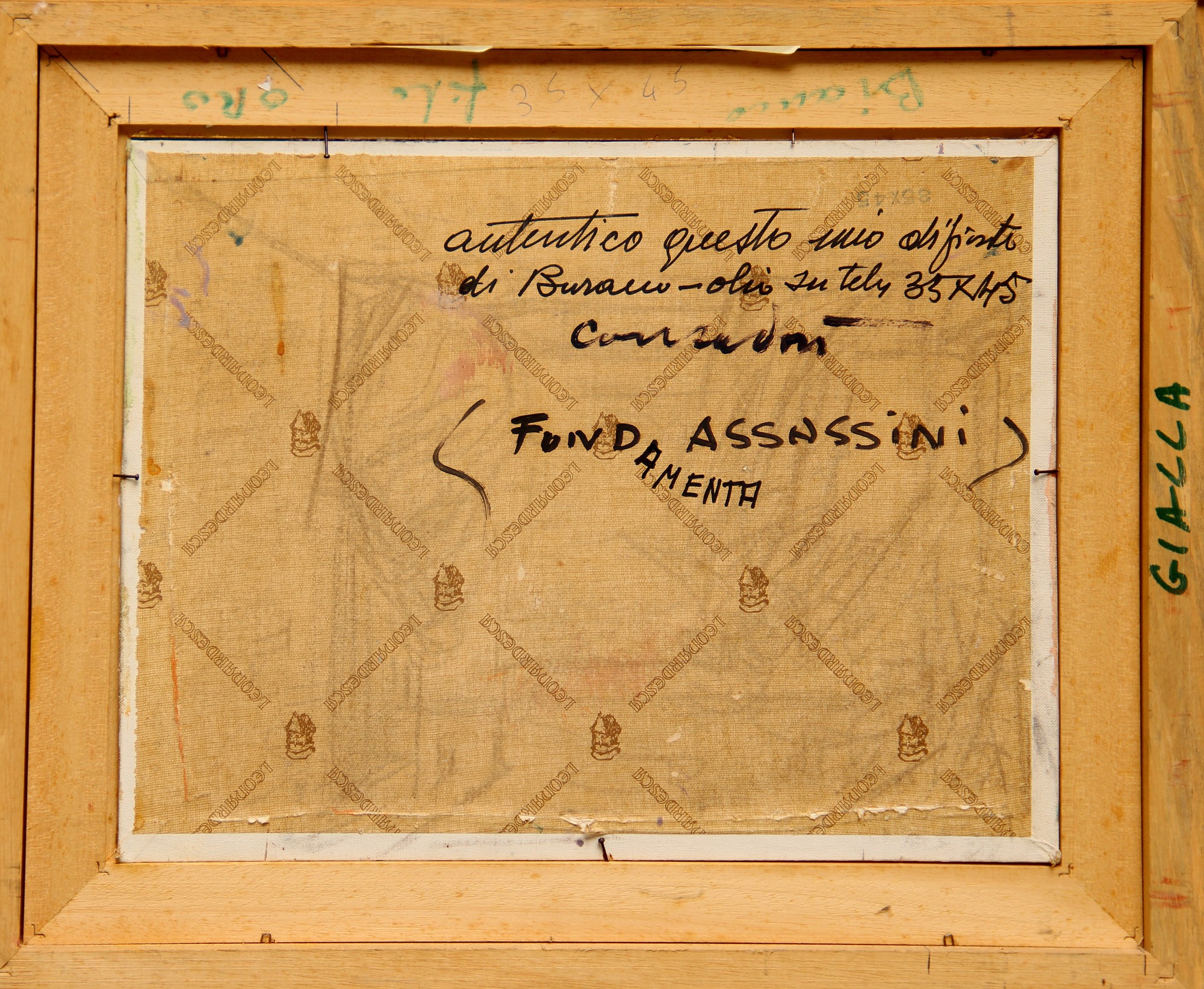 Dichiarazione di autenticità dell'artista (al retro)