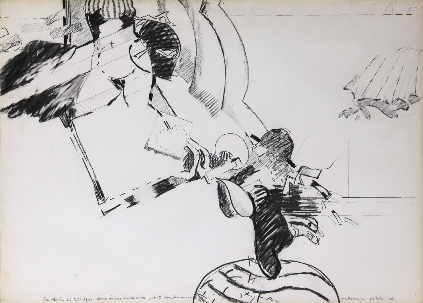 ORTELLI, Gottardo, La storia di Schiepis = cuore bianco, cuore nero (sabato sera, domenica mattina), 1966, grafite su cartoncino, cm. 50x70