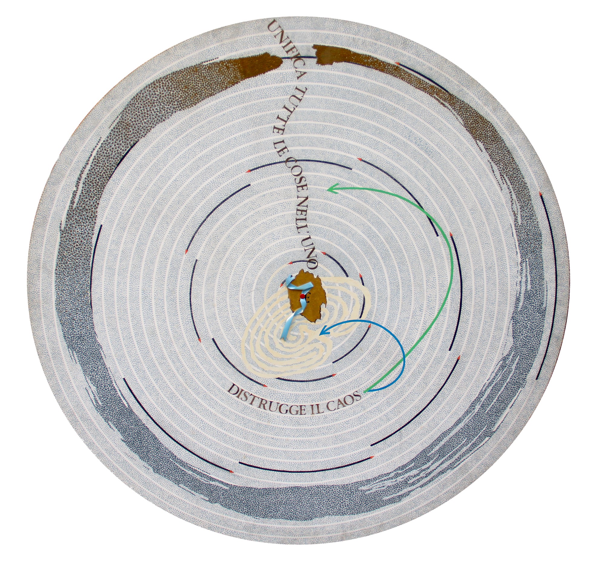 FERRARI, Vincenzo, Distruggere il caos, 1985, tecnica mista su tavola, cm. 111x111
