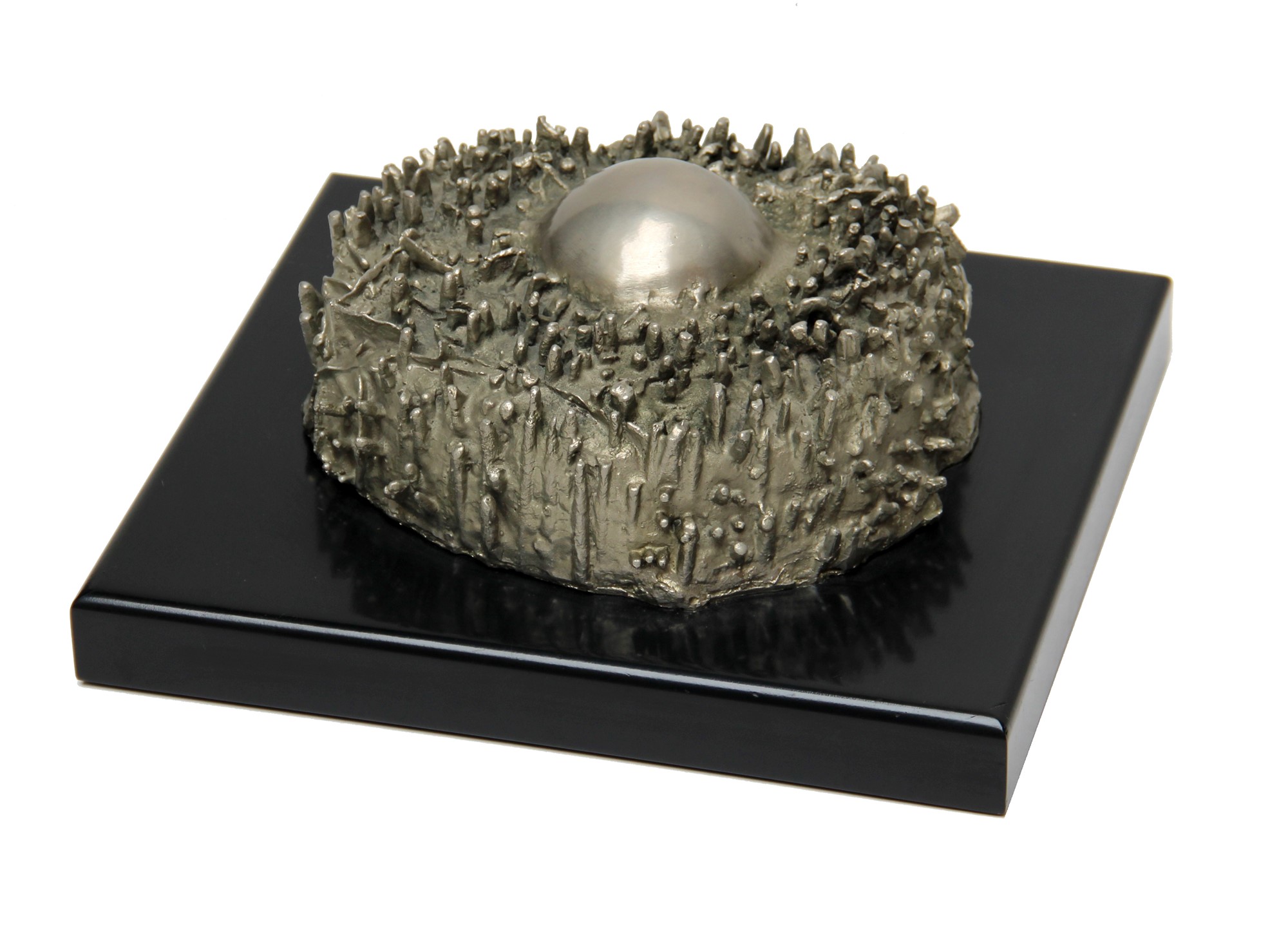 SCANAVINO, Emilio, Il nido, 1968, scultura in bronzo argentato, cm. 29,5x34x14