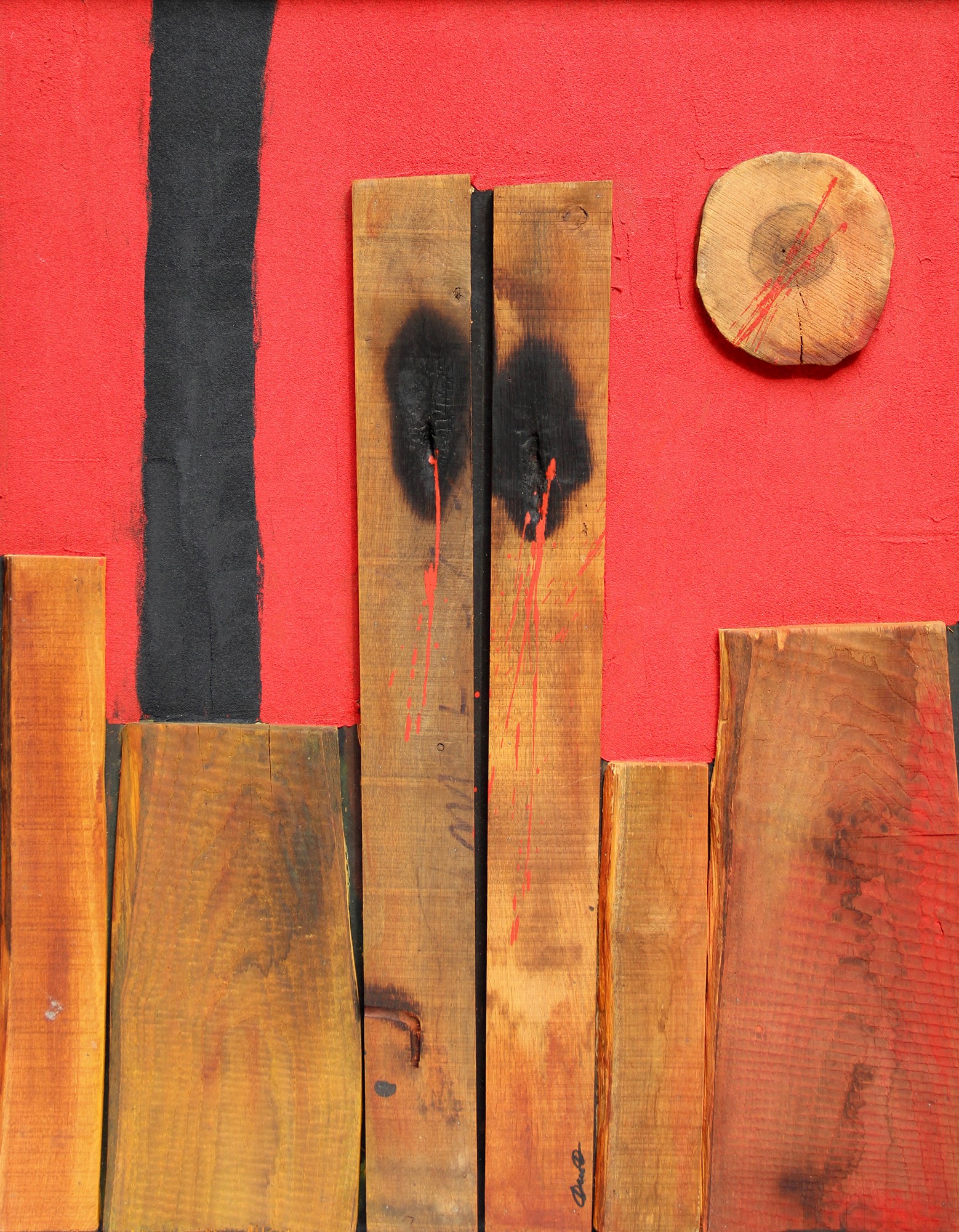 DE LUTTI, Pierluigi, Doppie ferite, 2002, assemblaggio di legno e tecnica mista su tavola, cm. 103x80