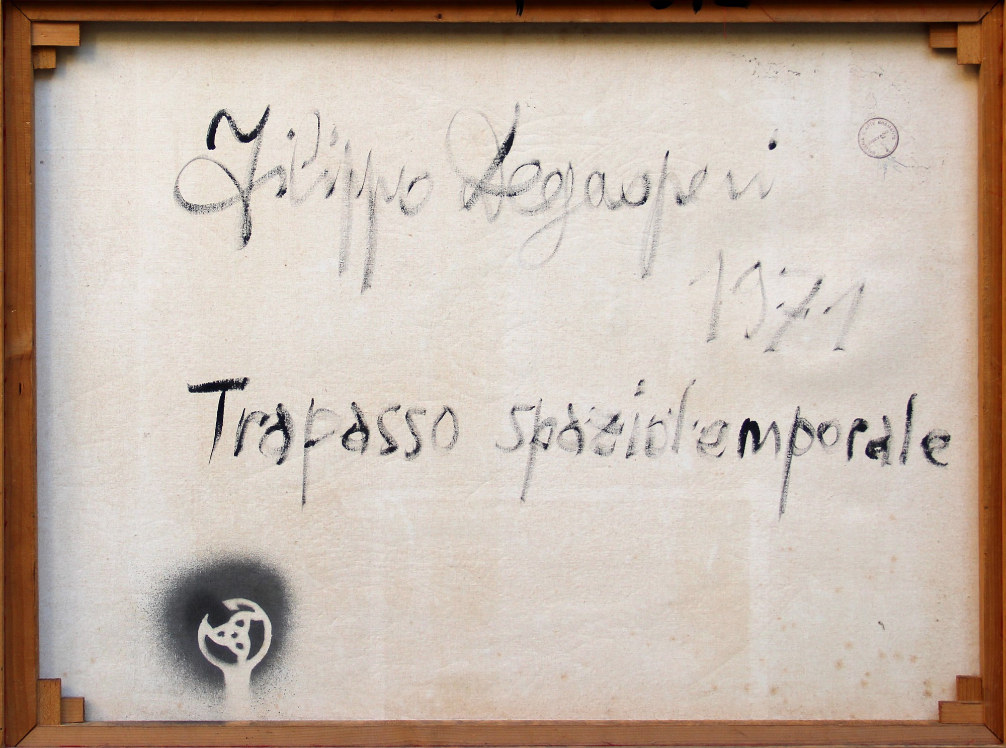 Firma, data, titolo "Filippo De Gasperi, 1971, Trapasso spaziotemporale";