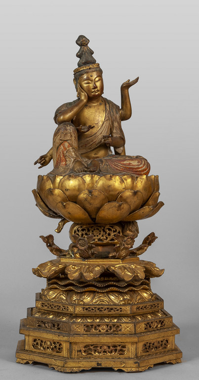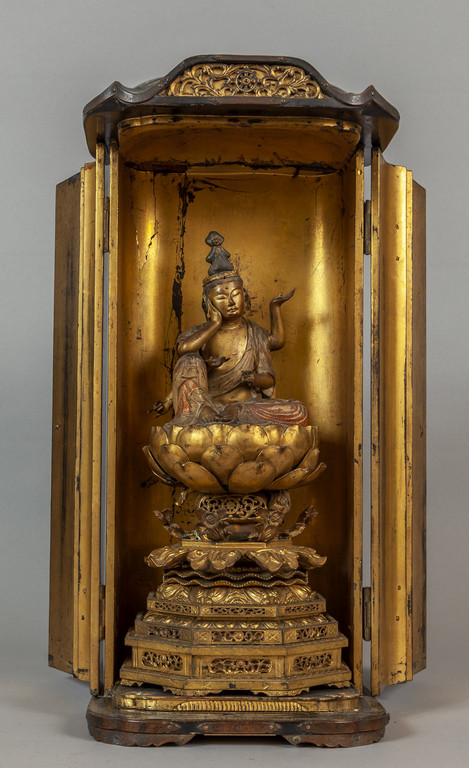 Tempietto con figura di Budda in legno finemente intagliato e dorato
