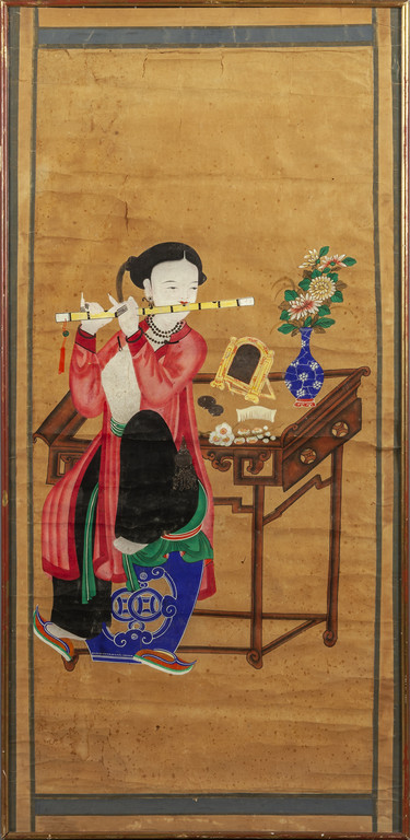 'Fanciulla con flauto' olio su carta Cina sec. XX