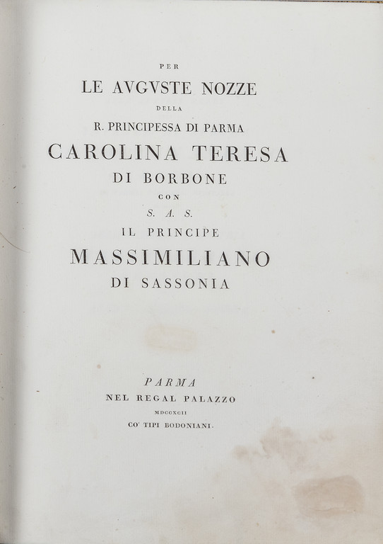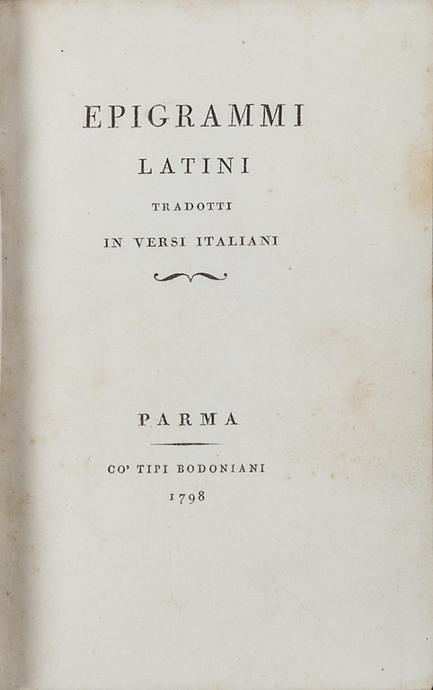Parma, coi tipi bodoniani, 1798 (legatura in pieno vitello marezzato bicromo con difetti alle cuffie e alle cerniere).