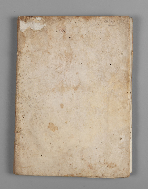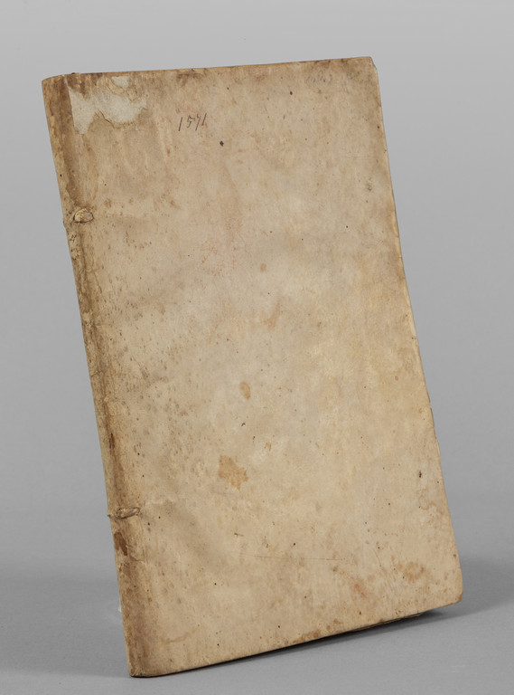Piena pergamena floscia a dorso muto. Rifilatura obliqua dei margini superiori; restauro antico su lacerazione chiusa alla segn. 8. altrimenti buon esemplare. In testa al volume è stato accluso un collage di sei grafici tratti dal Trattato dell'uso et della fabbrica dell'Astrolabio di Egnazio Danti con annotazioni settecentesche.