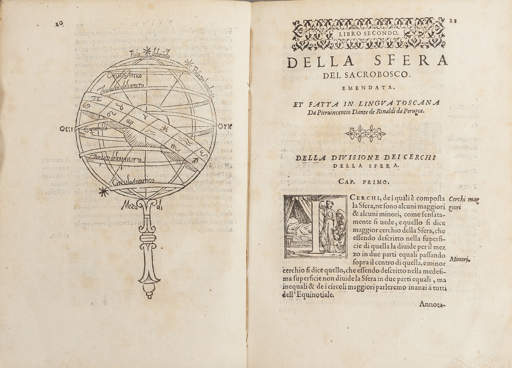 La sfera di messer Giovanni Sacrobosco tradotta emendata e distinta in capitoli da Piervincentio Dante de' Rinaldi con molte et utili annotazioni del medesimo