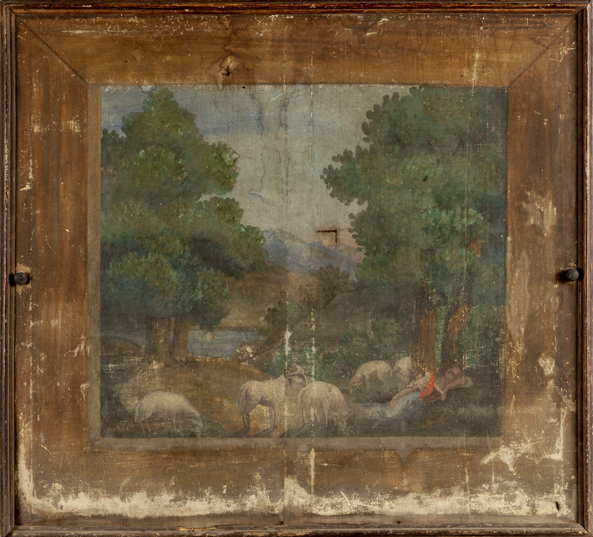 'Paesaggio animato con animali e figure' olio sec.XVIII (cattivo stato)