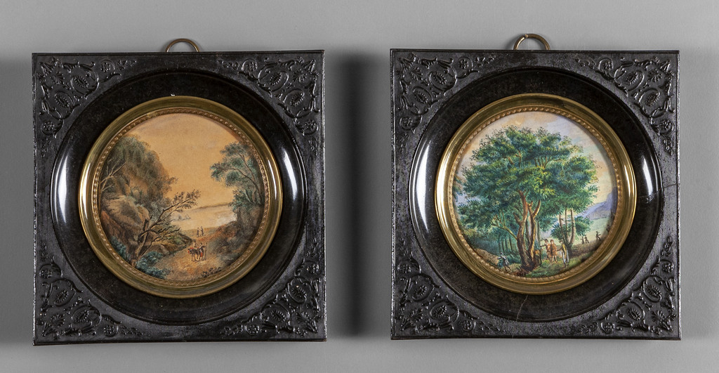 'Paesaggi' coppia di miniature cornicette in legno ebanizzato sec.XIX