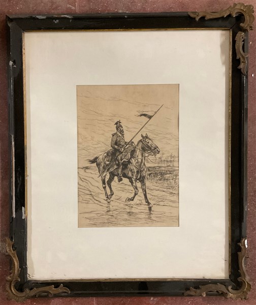 Édouard Detaille - "Militare francese a cavallo", acquaforte , in cornice (liev