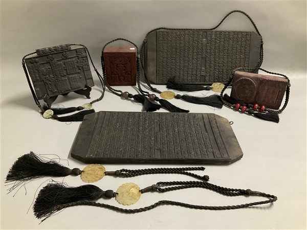 Lotto di cinque matrici xilografiche Cina, fine dinastia Qing (difetti)