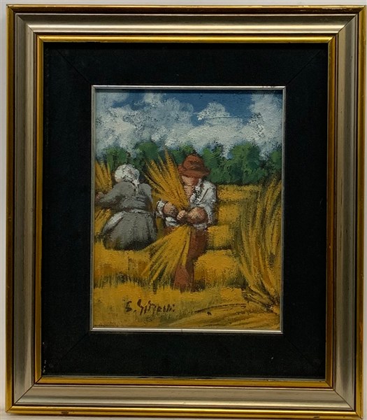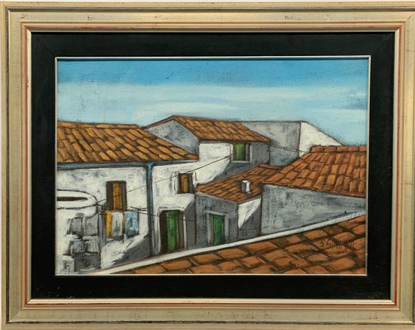 Lotto composto da tre dipinti a olio su tela raffiguranti paesaggi e figura, di misure e autori diversi