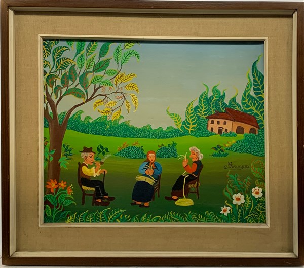 Lotto 256 | Lotto composto da tre dipinti Naif ad olio, due su compensato e uno su tela, di