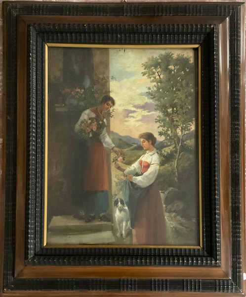 Lotto 286 | Ignoto "Ragazze alla santella" olio su compensato (cm 50x38) Recante firma G. I