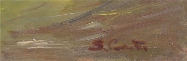 "Alla sorgente" olio su tavola (cm 40x30) Firmato in basso a destra. Al retro: firmato, titolato e datato. (difetti)