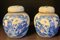 Due piccole potiches in porcellana bianca e blu decorate con figure