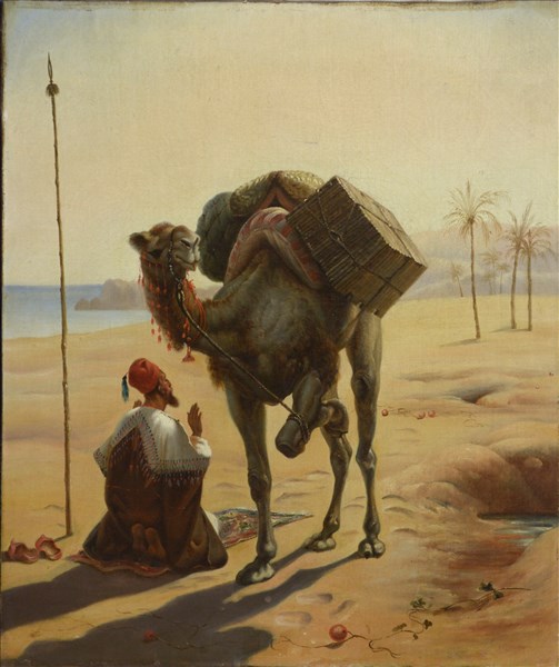 Ignoto della fine del XIX Secolo "In preghiera" olio su tela (cm 54x45) In corn