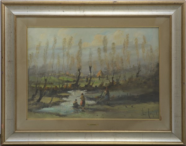 Lucio Cargnel "Paesaggio lacustre" olio su tela (cm 50x70) firmato in basso a de