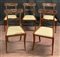 Gruppo di cinque sedie in mogano con schienale a giorno intagliato, montanti scanalati, gambe a sciabola. Inghilterra, Sec. XIX. (difetti)