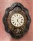 Pendola da parete del tipo "occhio di bue" con cornice sagomata in legno ebanizzato decorata con intarsi in madreperla. Quadrante bianco a numeri romani. Francia, ultimo quarto secolo XIX (cm 63x50) (difetti e mancanze)