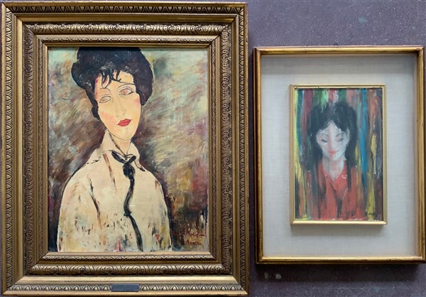 Lotto composto da una copia da Modigliani e un olio su tela raffigurante ragazz