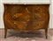 Cassettone di forma sagomata lastronato in radica, fronte mosso a tre cassetti,