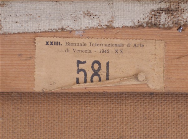 "Paesaggio" olio su tela (cm 60,5x80,5) firmato e datato 1949 in basso a destra, etichette al retro. In cornice