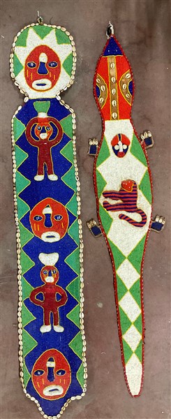 Arte africana, Nigeria, lotto di due pannelli decorativi in tessuto, perline e