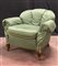 Poltrona con gambe anteriori in legno intagliato e rivestimento in tessuto verde (lievi difetti)
