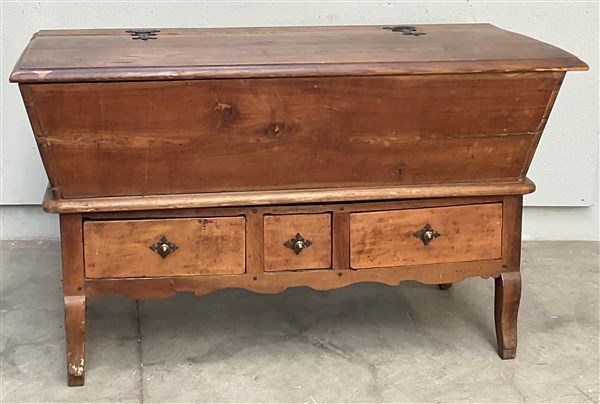 Lotto 477 | Antica madia in rovere con tre cassetti alla base e guarnizioni in metallo (dre