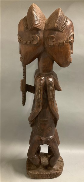 Arte africana, scultura con figure maschile e femminile unite (h cm 79) (difett