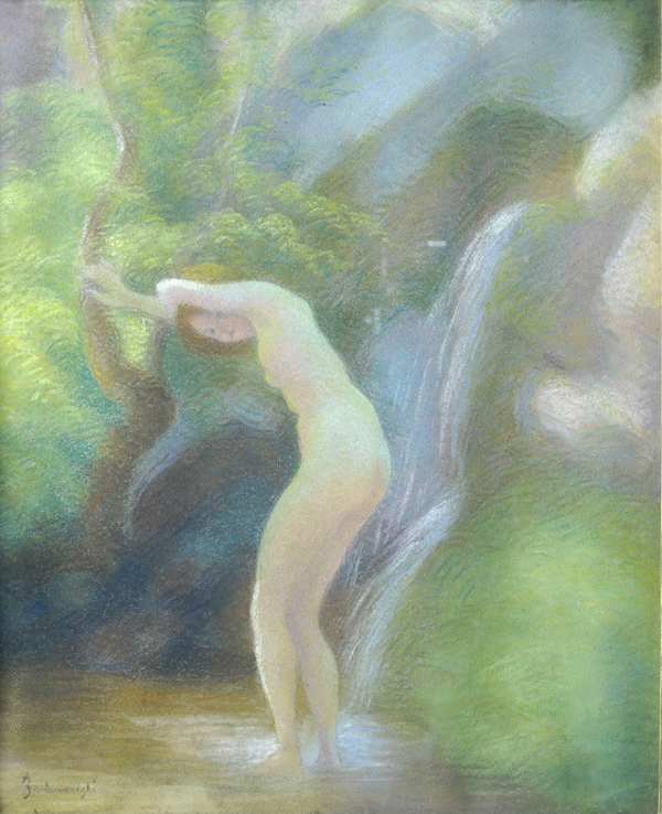 Federico Zandomeneghi (1841 - 1917) FANCIULLA ALLA SORGENTE Pastello su carta, cm. 53x43 Firma in basso a sinistra. Autentica di Enrico Piceni su fotografia. Bibliografia: Piceni M. Grazia, Piceni Enrico, Testi Camilla, Federico Zandomeneghi. Catalogo Generale, Libri Scheiwiller, p. 622, tav. 333