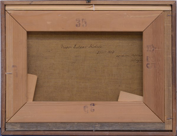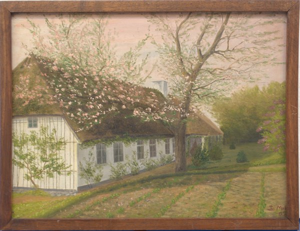 Firma indecifrata "Paesaggio danese" olio su tela (cm 25x35) Firmato e datato in basso a destra. Al retro: firmato e datato. In cornice