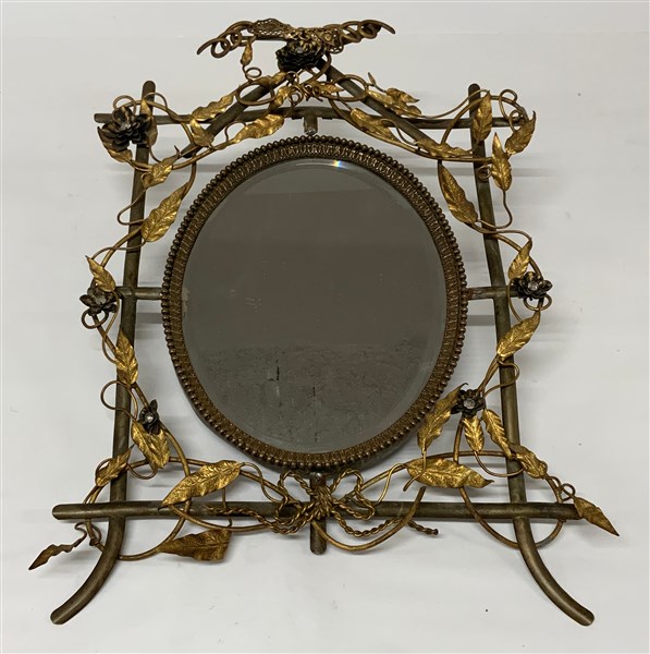 Specchio da parete in metallo decorato a fiorellini e foglioline dorate a tutto tondo (cm 50x32) (difetti)