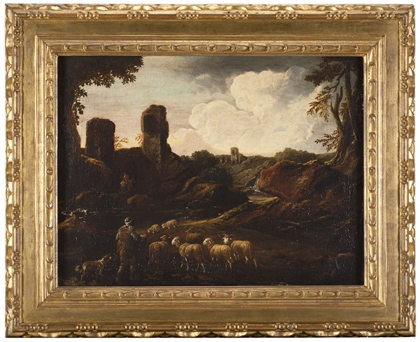Lotto 510 | Ambito di Domenico Brandi, secolo XVIII Paesaggio con ruscello, pastore, armen