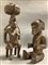 Arte africana, lotto di due figure femminili sedute, legno scolpito e pigmenti, etnie differenti (h max cm 56) (difetti)