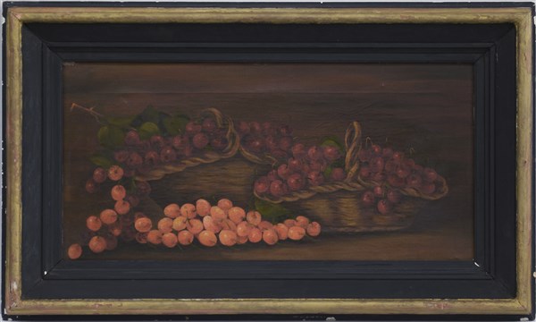 Ignoto "Canestre con cilegie" olio su tela (cm 35x70) Al retro: dedicato. In cornice