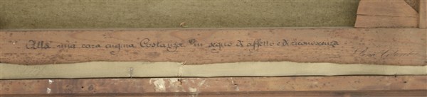 Ignoto "Canestre con cilegie" olio su tela (cm 35x70) Al retro: dedicato. In co