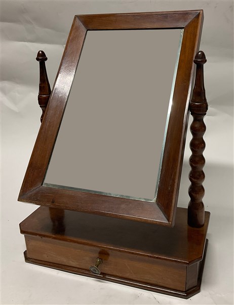 Lotto 558 | Psiche con cassetto e specchio basculante fra montanti torniti. Secolo XIX (cm