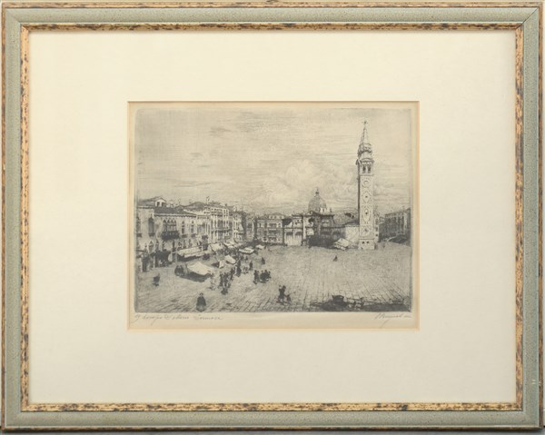 Brugnoli " Campo san Maria Formosa" acquaforte (cm 27x34) firmata e titolata a matita in basso, in cornice