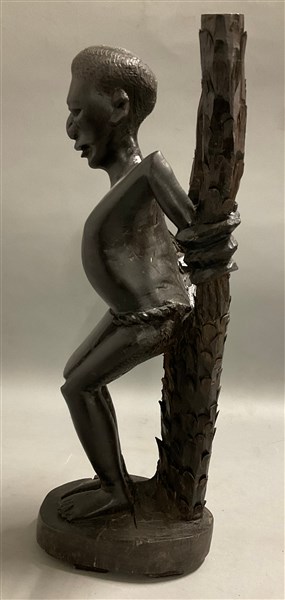 Arte africana, scultura in legno raffigurante un uomo legato ad un albero (h cm