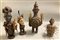Arte africana, lotto di quattro feticci in legno scolpito con pigmenti, inserti