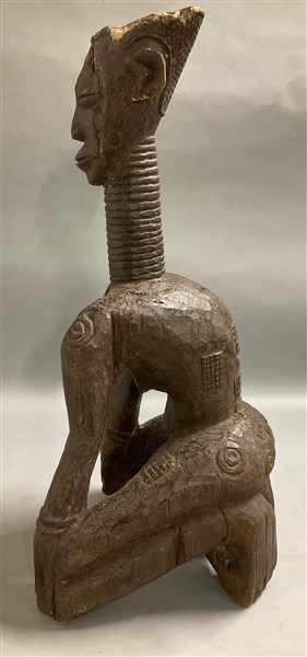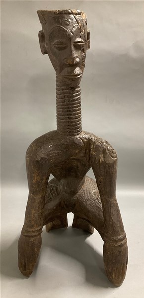 Arte africana, scultura in legno raffigurante una donna inginocchiata (h cm 65) (difetti e mancanze)